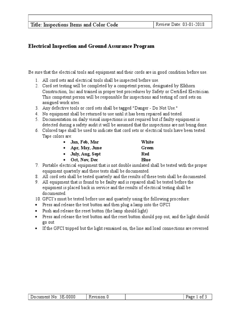 Msjc addresses inspection in the code in section 1.15 under the heading quality assurance program. The national electrical code (nec) has different designations for extension cords (table 400.4). Quarterly inspection color code these pictures of this page are about:osha. Hse management plan timimoun field development project online. The inspector must record the inspections and may use a color code or other device to show the last inspection.